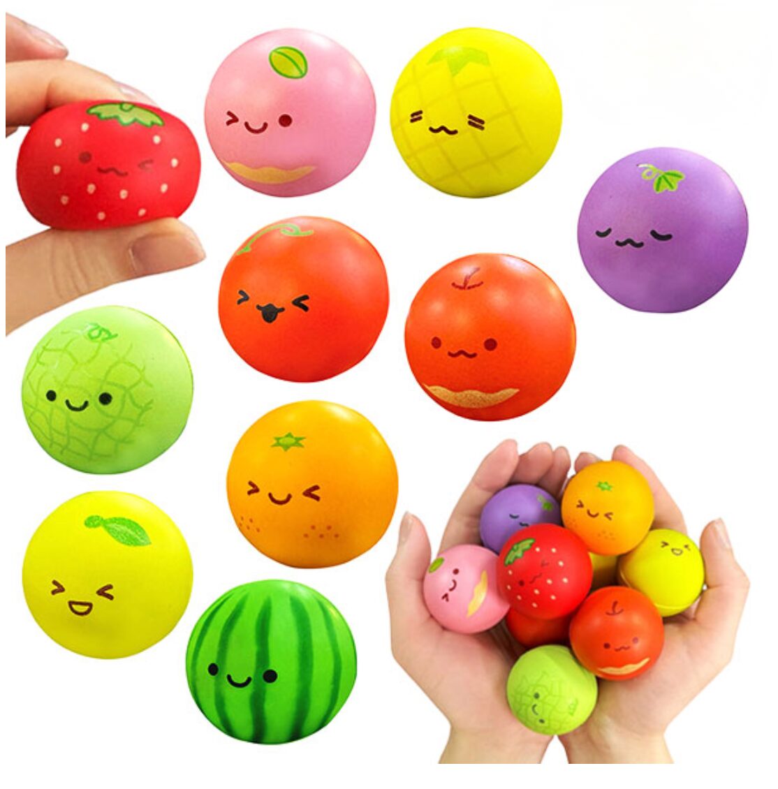 フルーツ柄のかわいいスクイーズマスコットです。いっぱい集めてお部屋に飾ってもかわいいよ♪